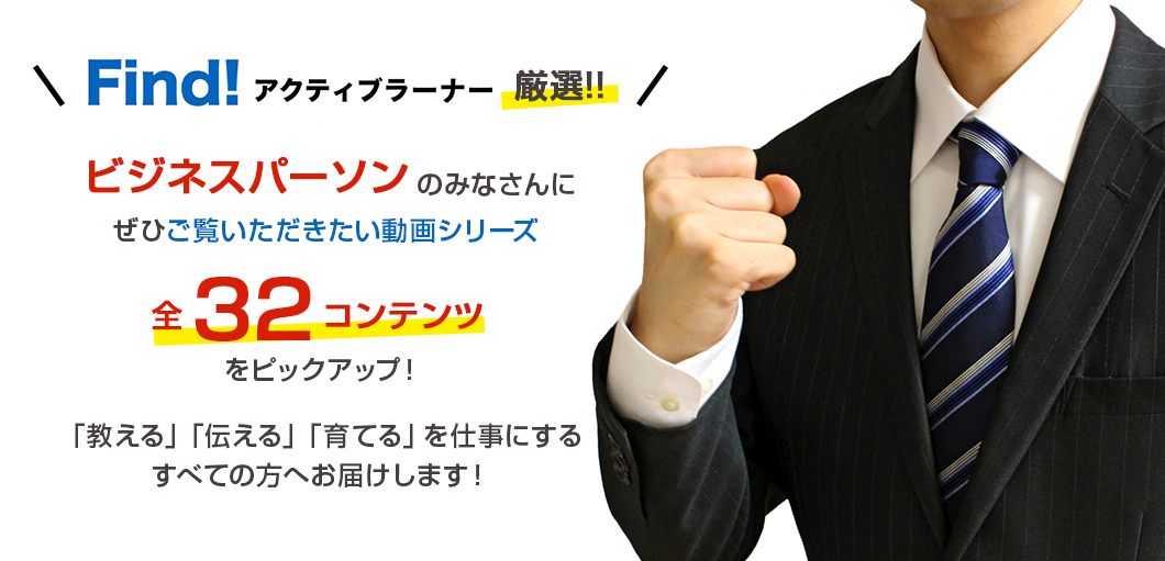 「教える力」を高めたいすべてのビジネスパーソンにとって、Find!アクティブラーナーは役に立つ教材の宝庫です。
