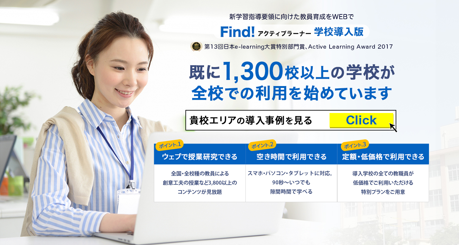 それを実践していく上で、「 Find!アクティブラーナー」 は教員の研究研修に欠かすことのできないツールとなっています。