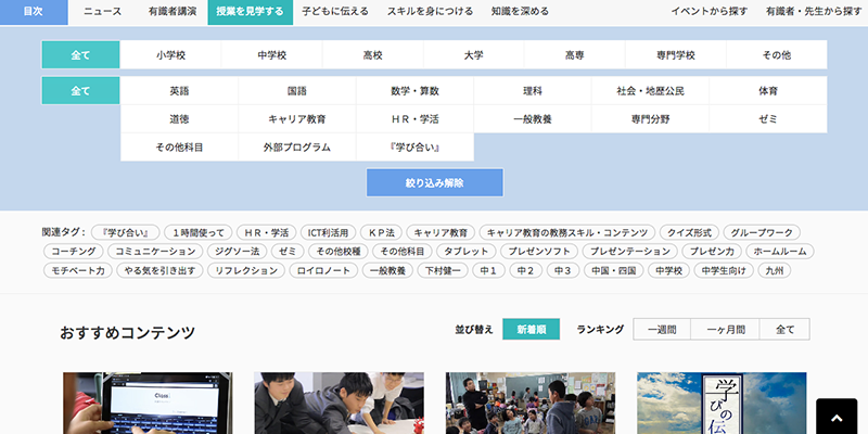 若手教員やさらなる授業力アップを目指す先生にとって必見のコンテンツが揃っています。